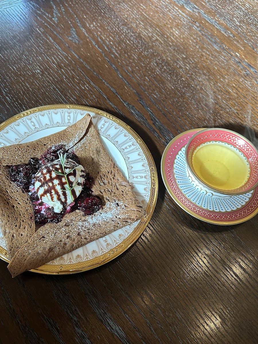 Step into an ambiance filled with warmth and charm; the interior features enchanting stained glass windows, inviting furniture, and an array of delightful decor that makes you feel like you're in a storybook setting. This is a place where every detail whispers elegance and coziness, making it the perfect spot for your next lunch date or a laid-back afternoon with friends.